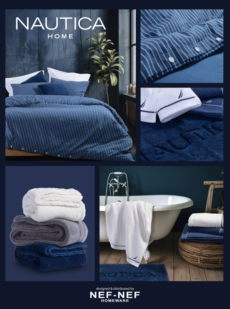 Το nautical style μπαίνει στο σπίτι με τη NAUTICA Home Collection. Μία αποκλειστική συνεργασία της NEF-NEF Homeware στην Ελλάδα με το διάσημο lifestyle brand που μεταφέρει την υψηλή αισθητική και άνεση στο υπνοδωμάτιο, το σαλόνι και το μπάνιο. Οι καθαρές γραμμές, η κυριαρχία του μπλε και η εμβληματική ρίγα σε σεντόνια, παπλώματα, πετσέτες και ριχτάρια, αποθεώνουν το μοντέρνο και διαχρονικά κομψό look & feel.